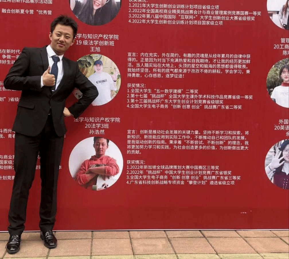 孫浩然,2020級(jí)法學(xué)3班,2020級(jí)金融輔修班。曾獲得大學(xué)生“挑戰(zhàn)杯”法學(xué)與知識(shí)產(chǎn)權(quán)學(xué)院優(yōu)秀獎(jiǎng)、新加坡全球品牌策劃大賽中國(guó)賽區(qū)三等獎(jiǎng)、全國(guó)大學(xué)生電子商務(wù)“創(chuàng)新、創(chuàng)意及創(chuàng)業(yè)”挑戰(zhàn)賽廣東省三等獎(jiǎng)、“創(chuàng)青春”挑戰(zhàn)杯省銀獎(jiǎng)、廣東省科技創(chuàng)新戰(zhàn)略專項(xiàng)資金“攀登計(jì)劃”立項(xiàng)、大學(xué)生創(chuàng)新創(chuàng)業(yè)訓(xùn)練計(jì)劃項(xiàng)目省級(jí)立項(xiàng)、校級(jí)立項(xiàng)、“創(chuàng)青春”挑戰(zhàn)杯校銀獎(jiǎng)、中石油“創(chuàng)青春”挑戰(zhàn)杯創(chuàng)新組與學(xué)術(shù)組華南賽區(qū)優(yōu)勝獎(jiǎng)、節(jié)能減排大賽校三等獎(jiǎng)等榮譽(yù)稱號(hào)。2022年10月,他負(fù)責(zé)項(xiàng)目被認(rèn)定為廣東省科技創(chuàng)新戰(zhàn)略項(xiàng)目,并獲批專項(xiàng)資金。