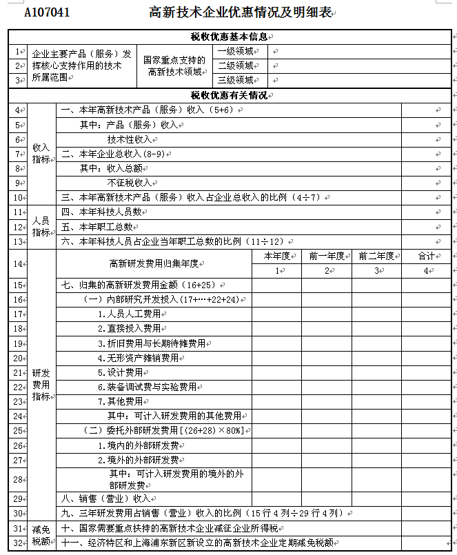 (二)《A107041高新技術(shù)企業(yè)優(yōu)惠情況及明細(xì)表》