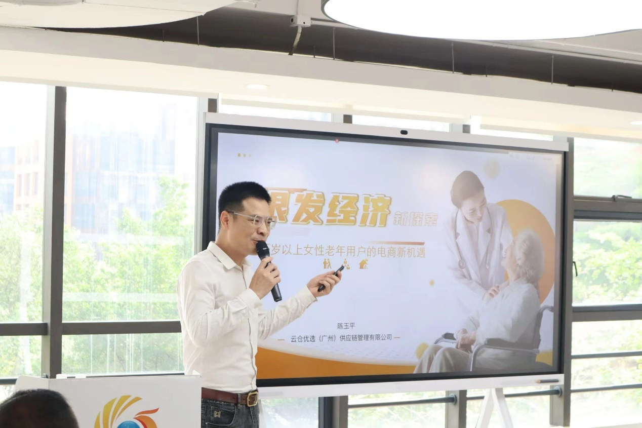 云倉優(yōu)選(廣州)供應(yīng)鏈管理有限公司的代表陳玉平介紹了“國家鄉(xiāng)村振興戰(zhàn)略背景下銀發(fā)經(jīng)濟(jì)新探索”,以一首《軍中綠花》活躍開場(chǎng),通過分析各個(gè)年齡階段的群體并反問學(xué)員們哪個(gè)群體有消費(fèi)需求,展開講解老年群體為何是發(fā)展前景最好的消費(fèi)者,著重講了中老年人的生活現(xiàn)狀、消費(fèi)需求,幫助學(xué)員們更清晰洞察銀發(fā)經(jīng)濟(jì)的發(fā)展前景,啟發(fā)學(xué)員們思考鄉(xiāng)村農(nóng)業(yè)發(fā)展的新思路。