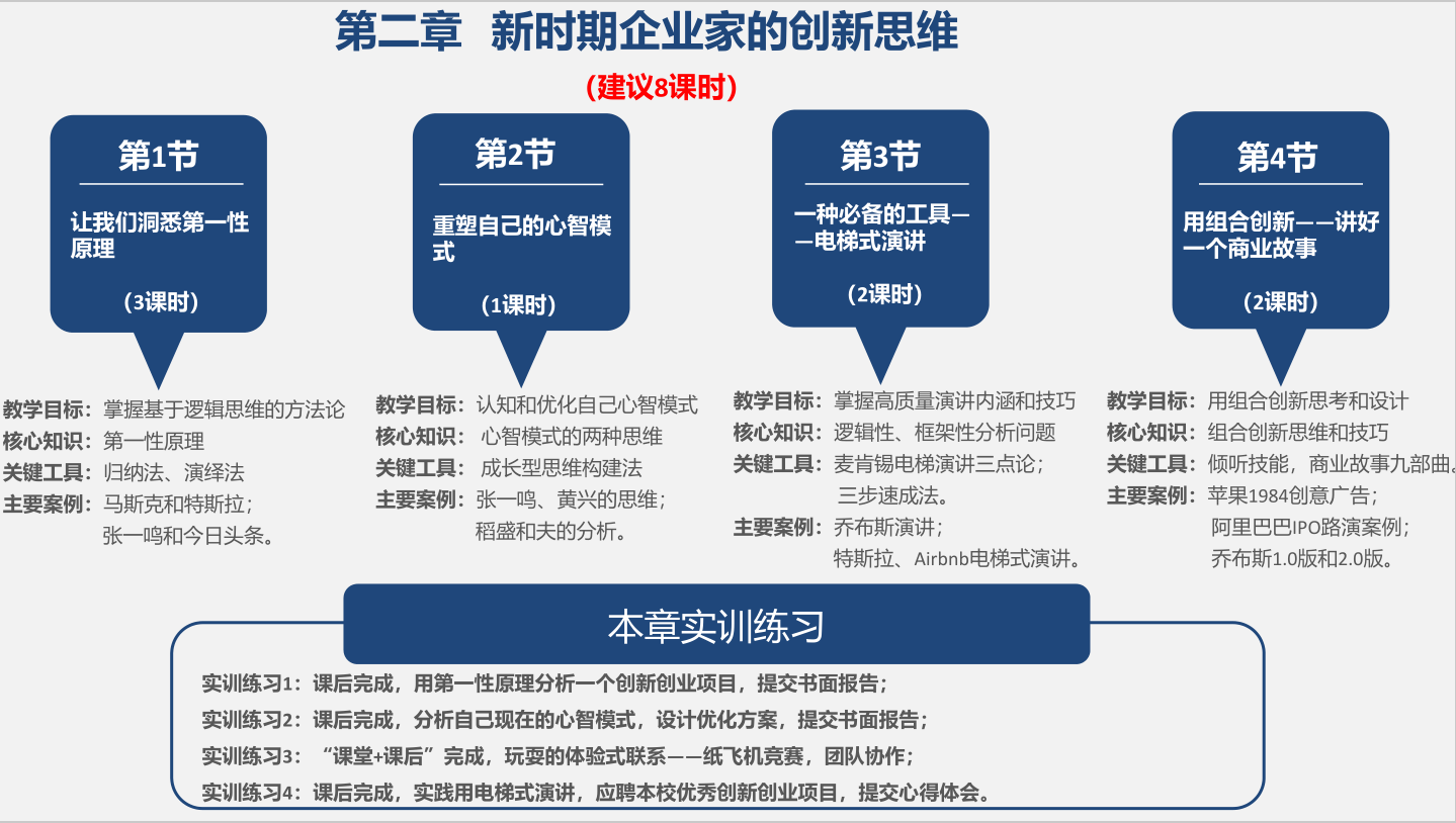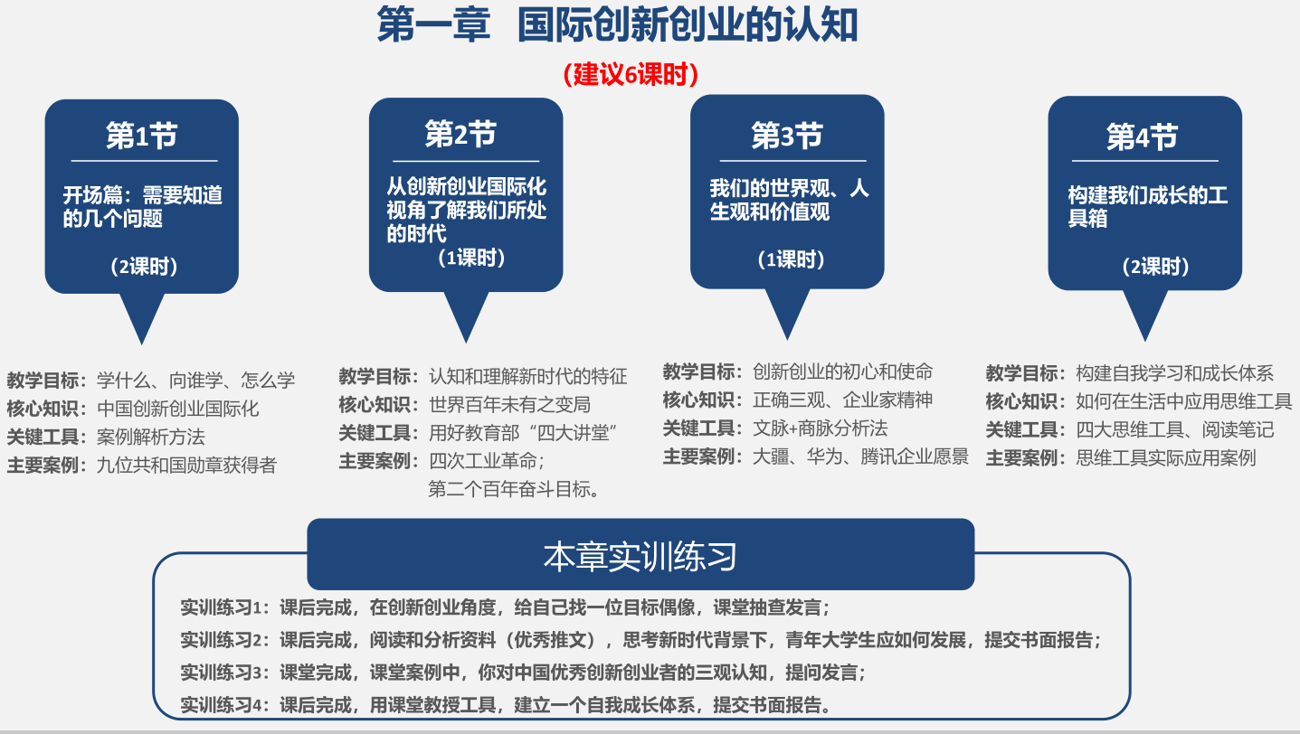 《創(chuàng)新與創(chuàng)業(yè)基礎(chǔ)(課程思政改革模式)》課程是學(xué)校創(chuàng)新創(chuàng)業(yè)教育課程思政改革的重要內(nèi)容,本課程目標(biāo)是培養(yǎng)青年學(xué)生成為擁有正確的世界觀、人生觀和價值觀,具備新時代創(chuàng)新創(chuàng)業(yè)素質(zhì)的國際化人才。課程特點一是具有國際化廣度,立足初心愿景、堅定時代使命、擁有國際視野;二是具有國際化深度,構(gòu)建學(xué)習(xí)者價值觀、知識、技能和過往經(jīng)驗糅合在一起的綜合體,最終成效會體現(xiàn)為學(xué)習(xí)者的氣質(zhì)、修養(yǎng)和學(xué)識;三是符合青年人溫度,學(xué)習(xí)體系設(shè)計、知識模塊構(gòu)建應(yīng)該更具有通識性,滿足不同專業(yè)和學(xué)科背景的學(xué)習(xí)者,相關(guān)案例、人物事件的遴選植入,應(yīng)該能立足新時代青年的感知興趣、認(rèn)知特征和學(xué)習(xí)需求,能產(chǎn)生共鳴和引發(fā)思考。